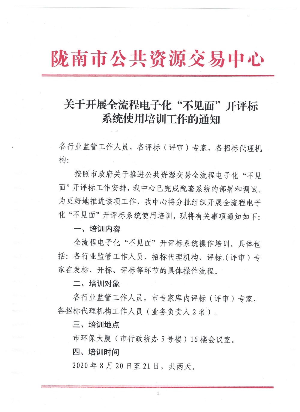 關(guān)于開展全流程電子化“不見面”開評(píng)標(biāo)系統(tǒng)使用培訓(xùn)工作的通知