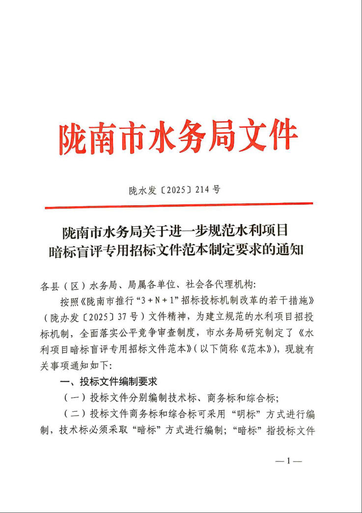 附件:附件:隴南市水利項目盲標暗評專用招標文件范本(1).pdf 附件:水利類-材料采購模板.docx 附件:水利類-監(jiān)理模板.docx 附件:水利類-設(shè)計模板.docx 附件:水利類-施工模板.docx
