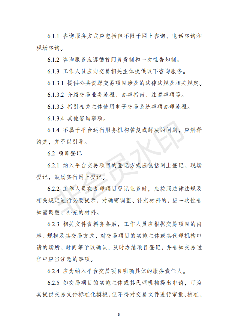 ??一、各地區(qū)應(yīng)根據(jù)有關(guān)法律法規(guī)及《標(biāo)準(zhǔn)》,按照簡(jiǎn)化流程、提高效率、公開透明的要求,結(jié)合本地實(shí)際,制定本行政區(qū)域的公共資源交易平臺(tái)服務(wù)標(biāo)準(zhǔn),以標(biāo)準(zhǔn)化推進(jìn)全流程電子化、服務(wù)便捷化。